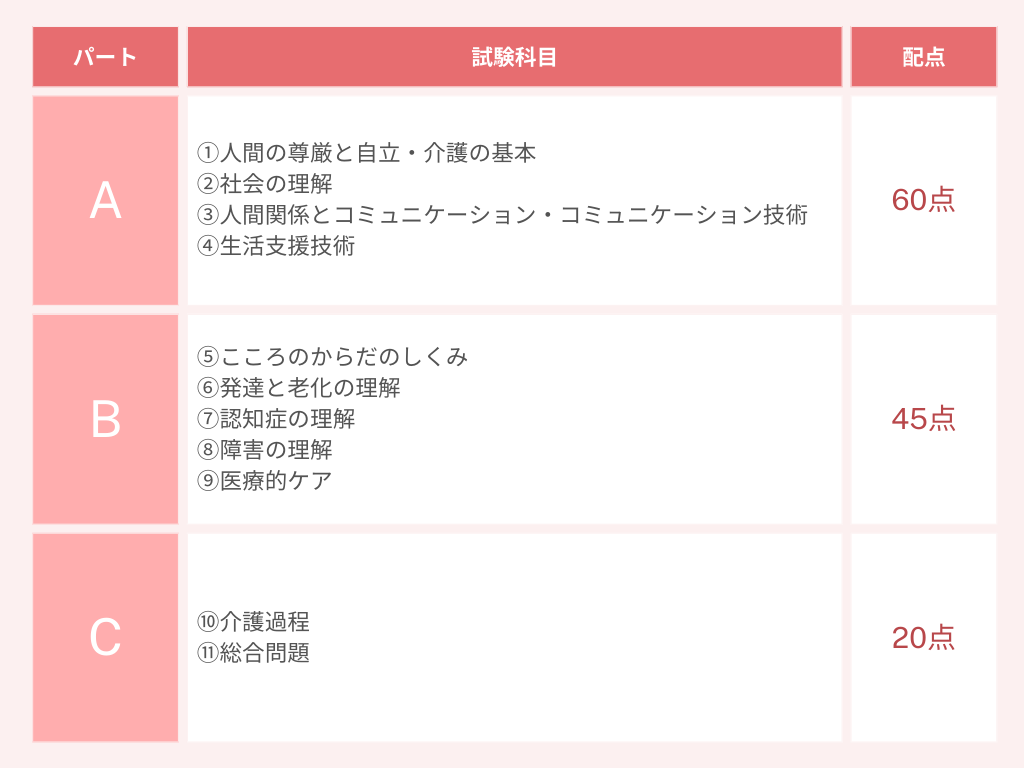 介護福祉士国家試験における「パート」とは、複数の科目群をひとまとめにした単位のことです。